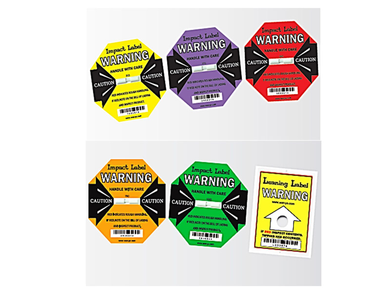 Impact Label is a highly-visible device that will activate when an impact level exceeds a predetermined level. When mounted on the external packaging, the device visually alerts everyone involved in the packaging handling process that additional care is required.